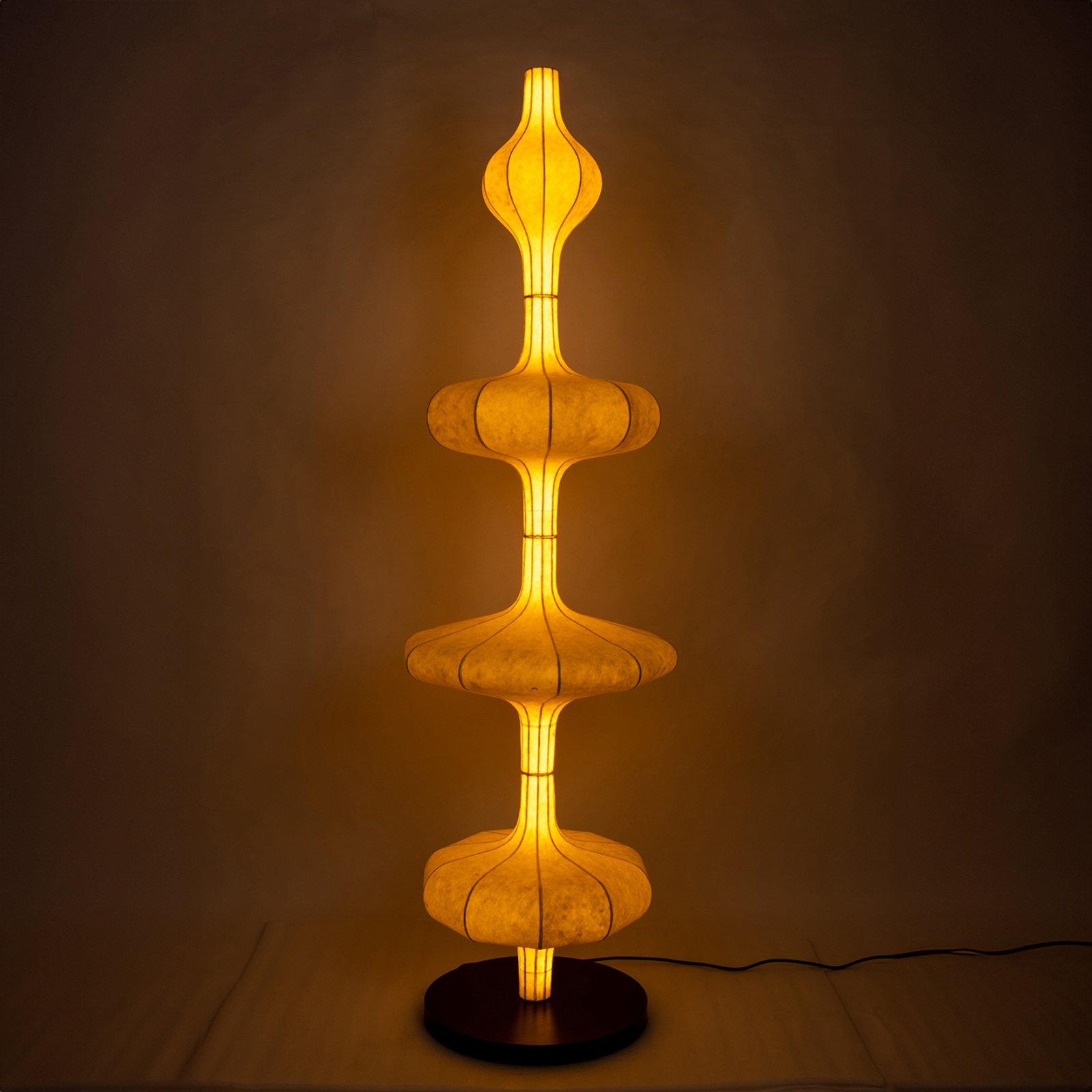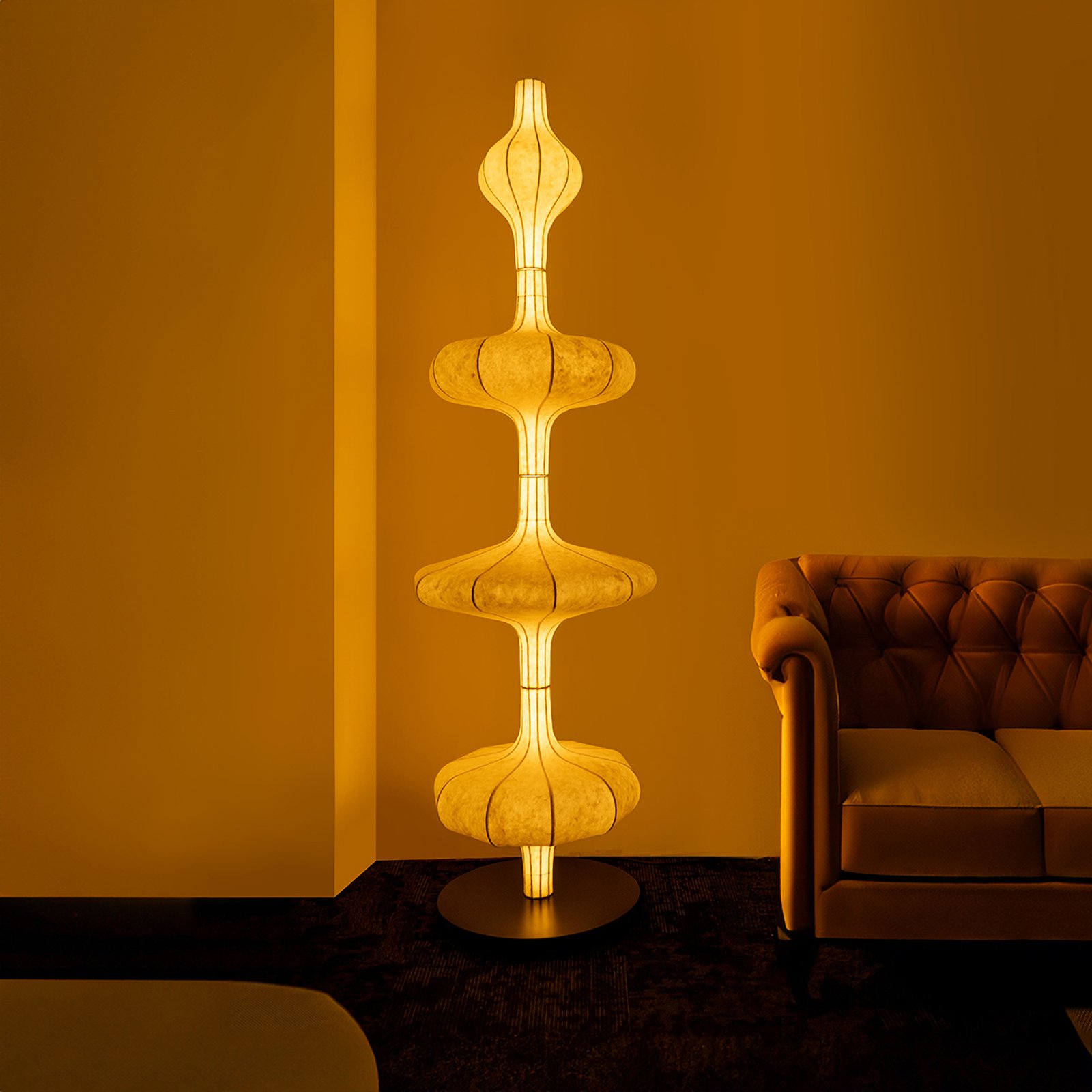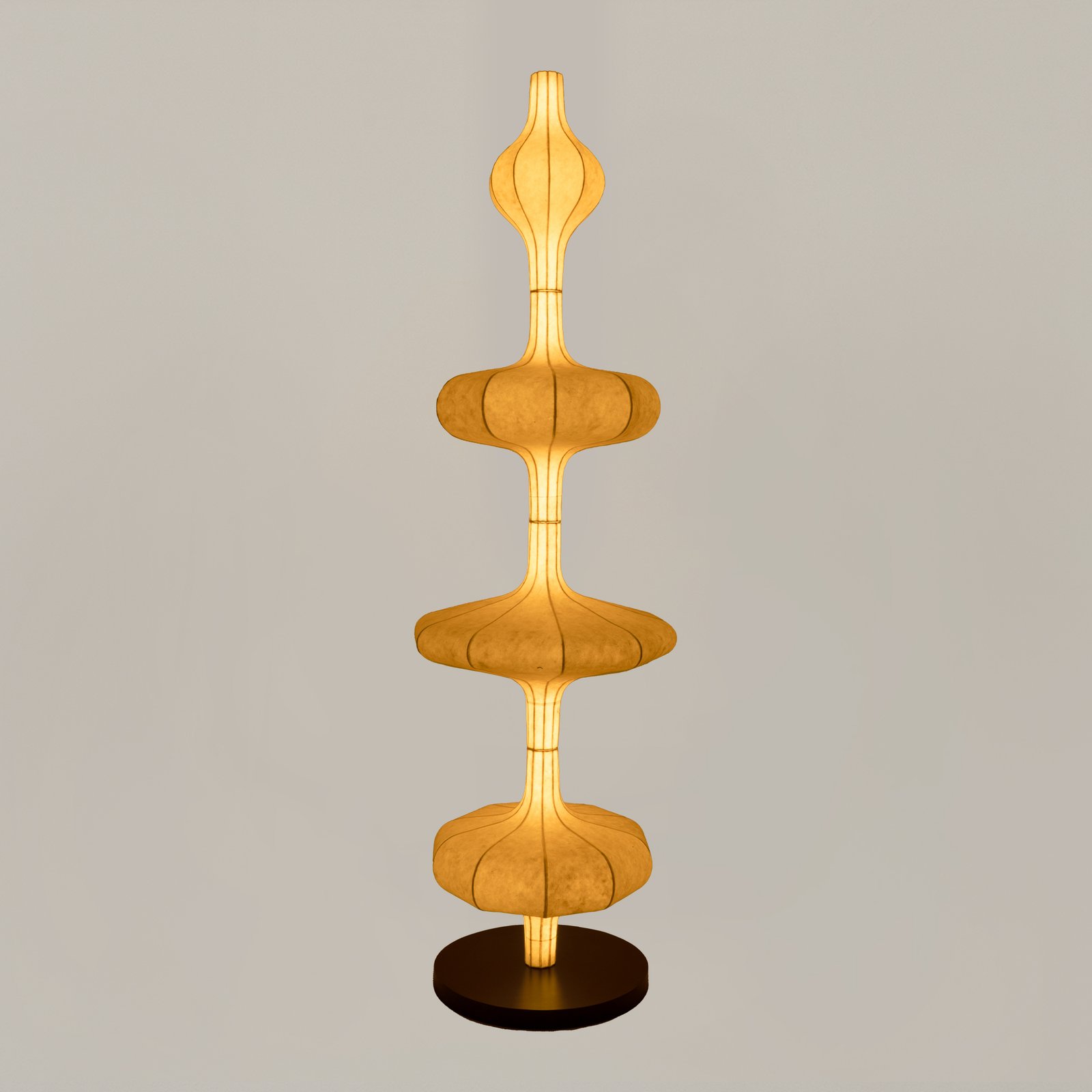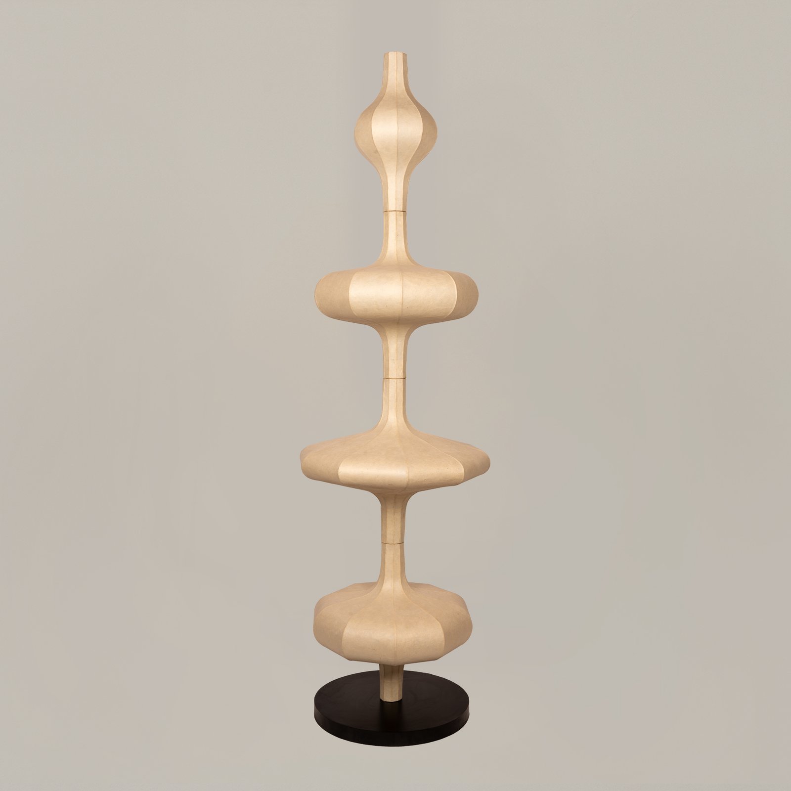 A towering three-tiered floor lamp inspired by Kerala’s temple lamps. Its Lokta paper form radiates a warm golden glow, creating a sculptural focal point for lobbies, lounges, and large living spaces.