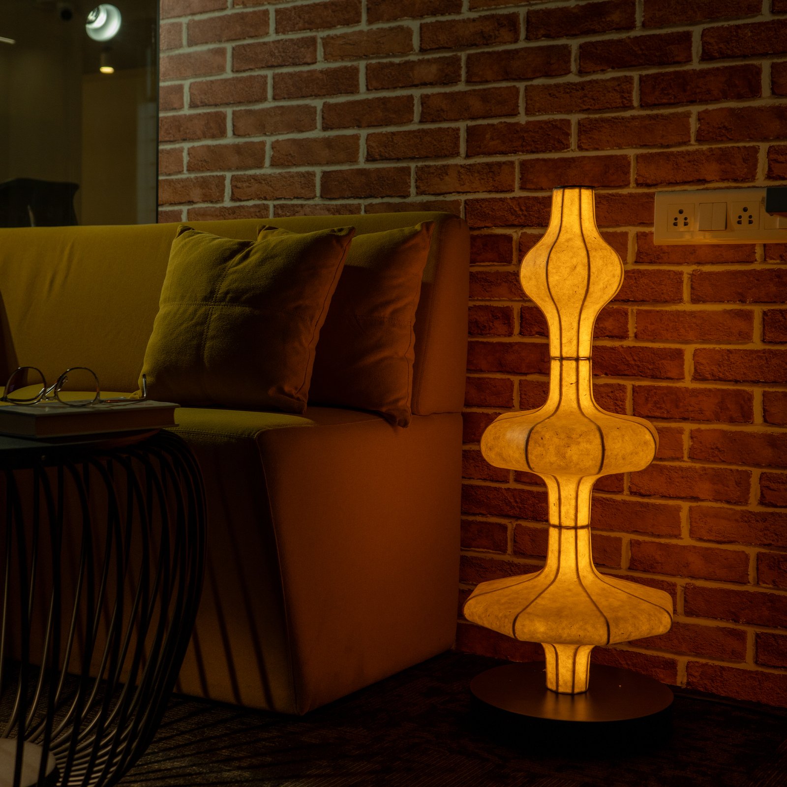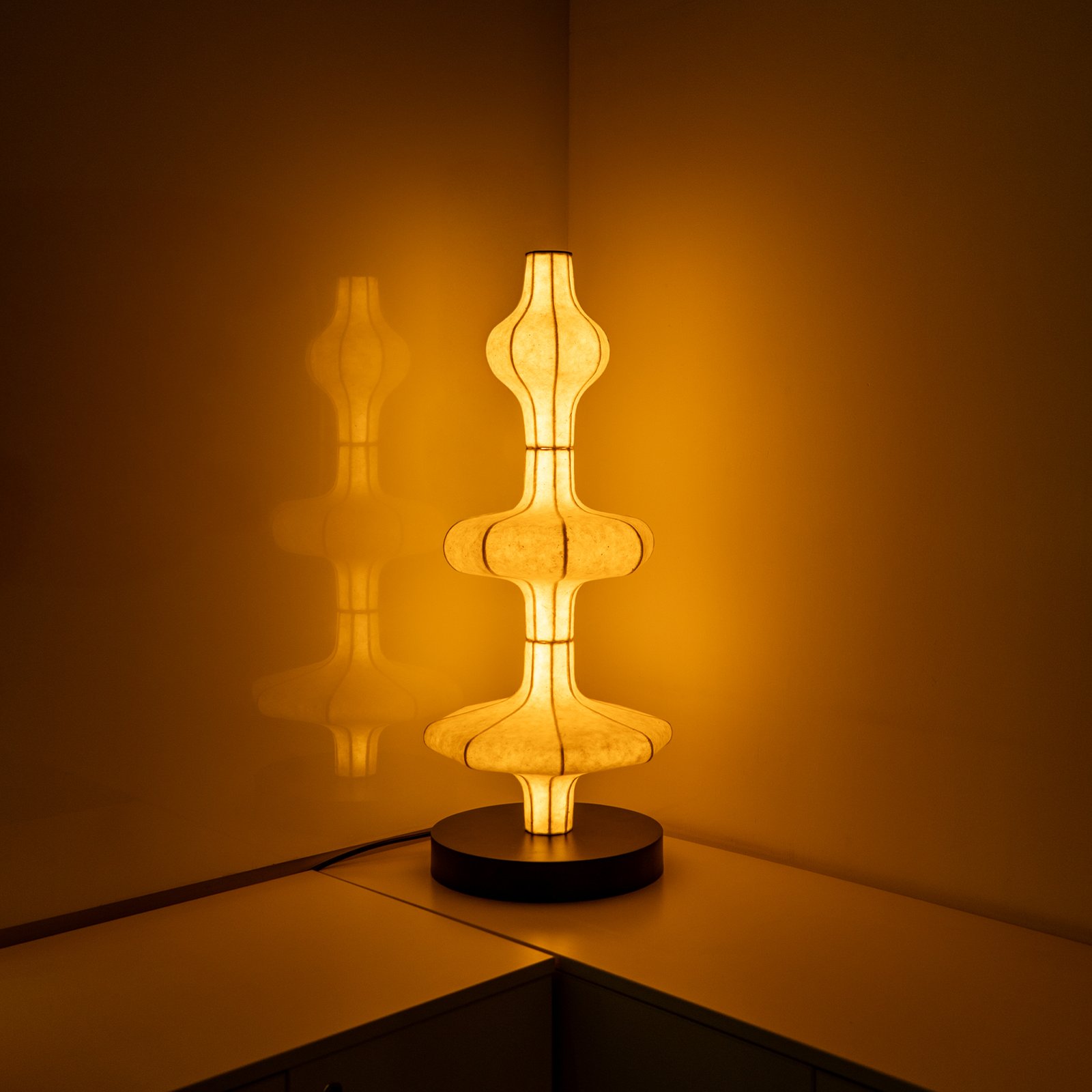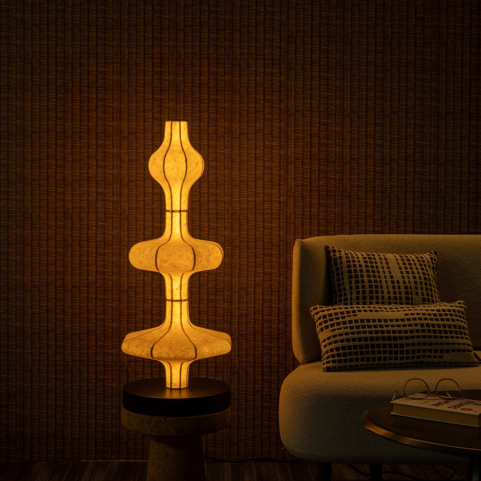 A compact table lamp that brings the AUM collection’s temple-inspired silhouette to bedside tables, consoles, or worktops, adding a soft, calming glow to personal spaces.