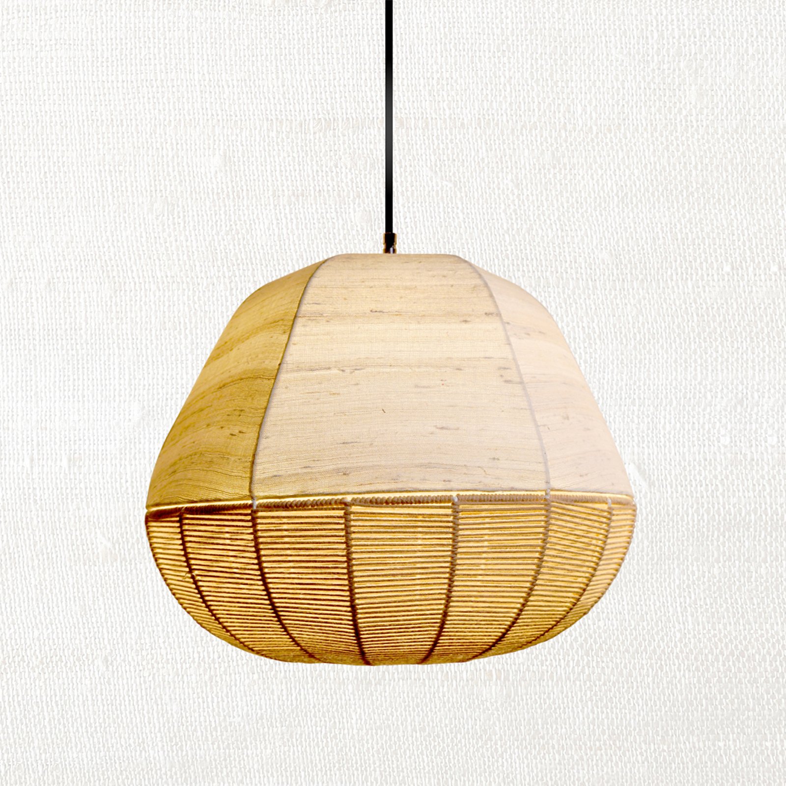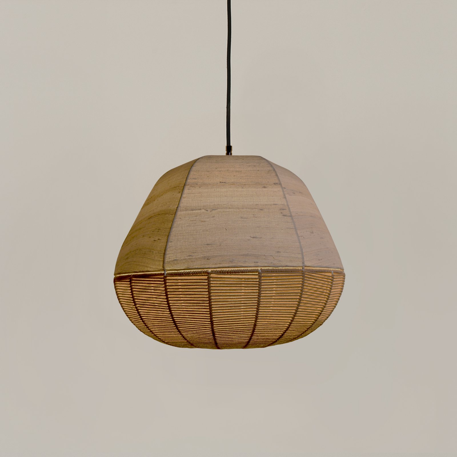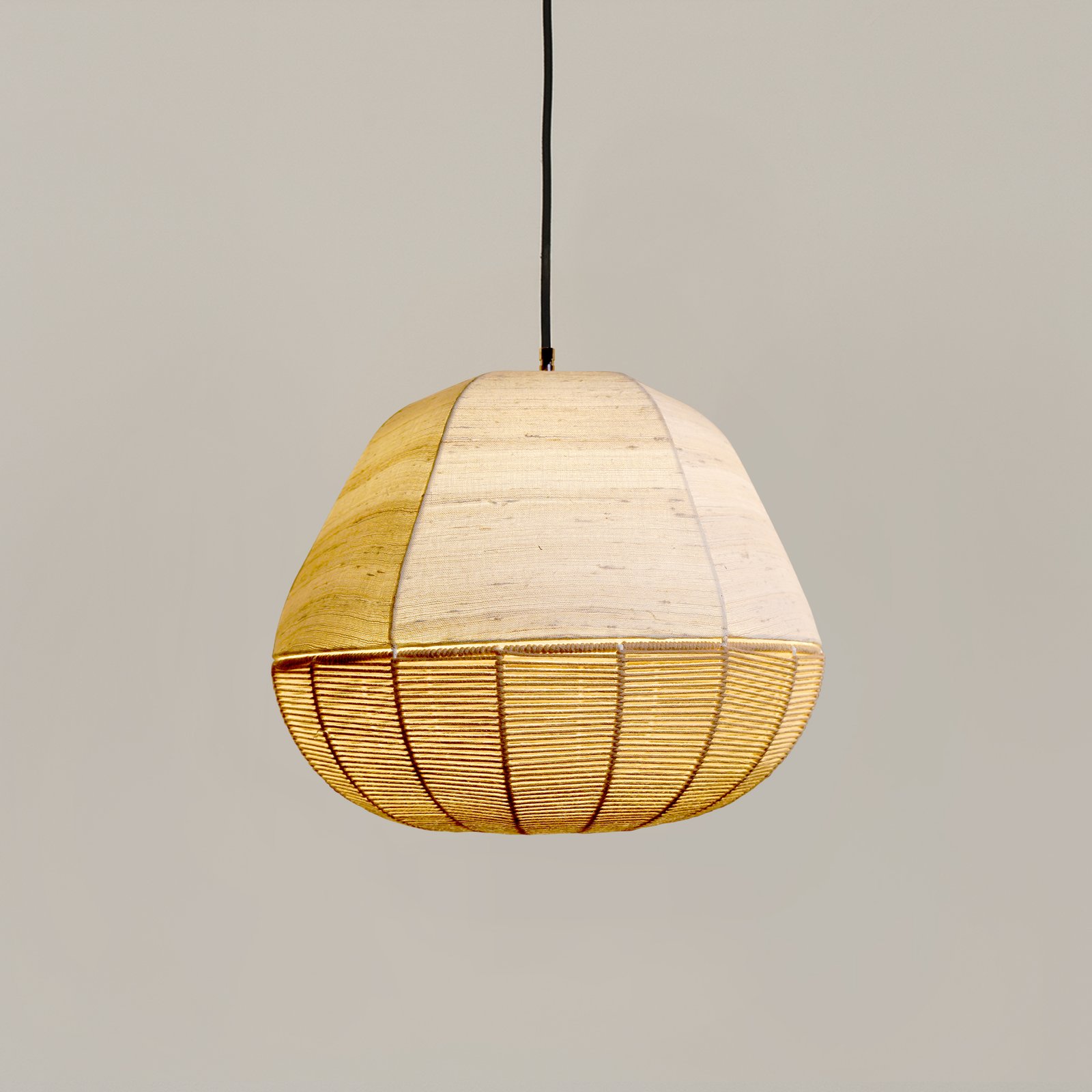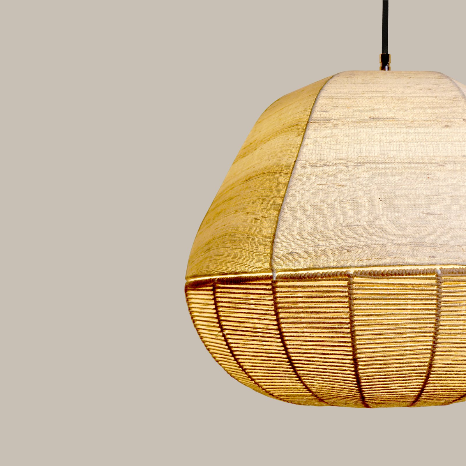 Elevate your space with the alluring glow of this hand-woven luminaire, expertly crafted from organic cotton fabric and delicately entwined cotton rope. Experience the captivating reunion of heritage craftsmanship and modern aesthetics.